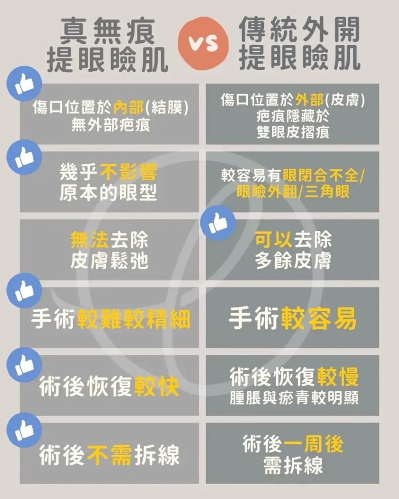 傳統外開提眼瞼肌的優點